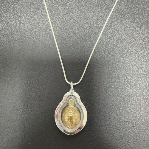 ສາຍຄໍນີ້ແມ່ນເຄື່ອງປະດັບພຣະເຄື່ອງໄທທີ່ມີຫົວຂໍ້ຫຼວງພໍ່ເຕົ່າ. ມັນໄດ້ປະສົມປະສານຮູບແບບແຟຊັນຍ້ອນຍຸກ ແລະ ເຕັກນິກການເຮັດໃຫ້ເກົ່າ, ໂດຍເນັ້ນການອອກແບບທີ່ລຽບງ່າຍທັນສະໄໝ ແລະ ສ້າງສັນແບບສະເພາະກຸ່ມ. ມັນເປັນເຄື່ອງປະດັບທີ່ສະແດງເຖິງບຸກຄະລິກກະພາບ ແລະ ລົດຊາດທີ່ເປັນເອກະລັກ.